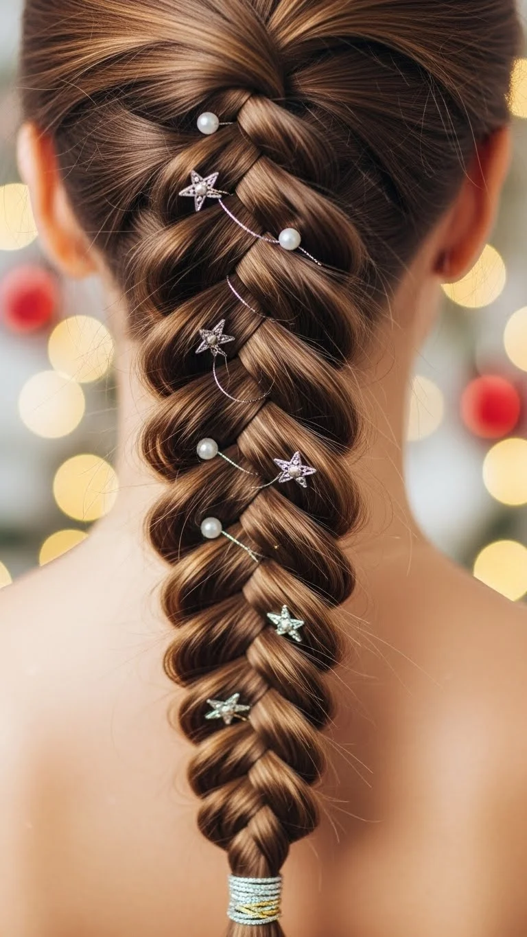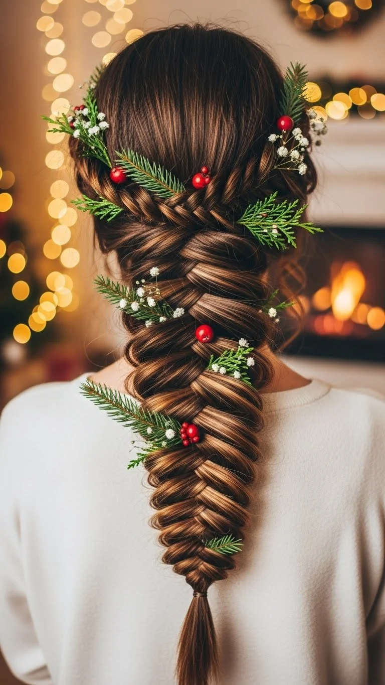 The fishtail braid has a unique texture that stands out. Start by dividing your hair into two sections. Take a small piece from the outside of one section and add it to the other. Repeat this process until you reach the end. This braid looks intricate but is quite simple to create. To make it festive, try adding gold or silver embellishments. It’s a stylish option that works beautifully for Christmas!