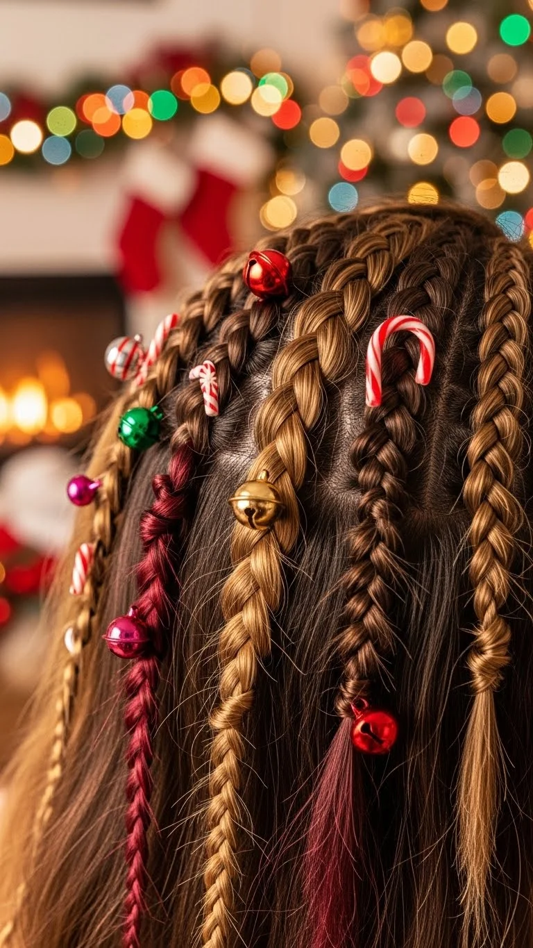 Knotted braids offer a fun, unique texture. Create simple braids but twist and knot them along the length. This style is informal and easy to manage. Add seasonal decorations or hair ties for flair. It’s a playful approach that keeps your hair tidy while looking festive!