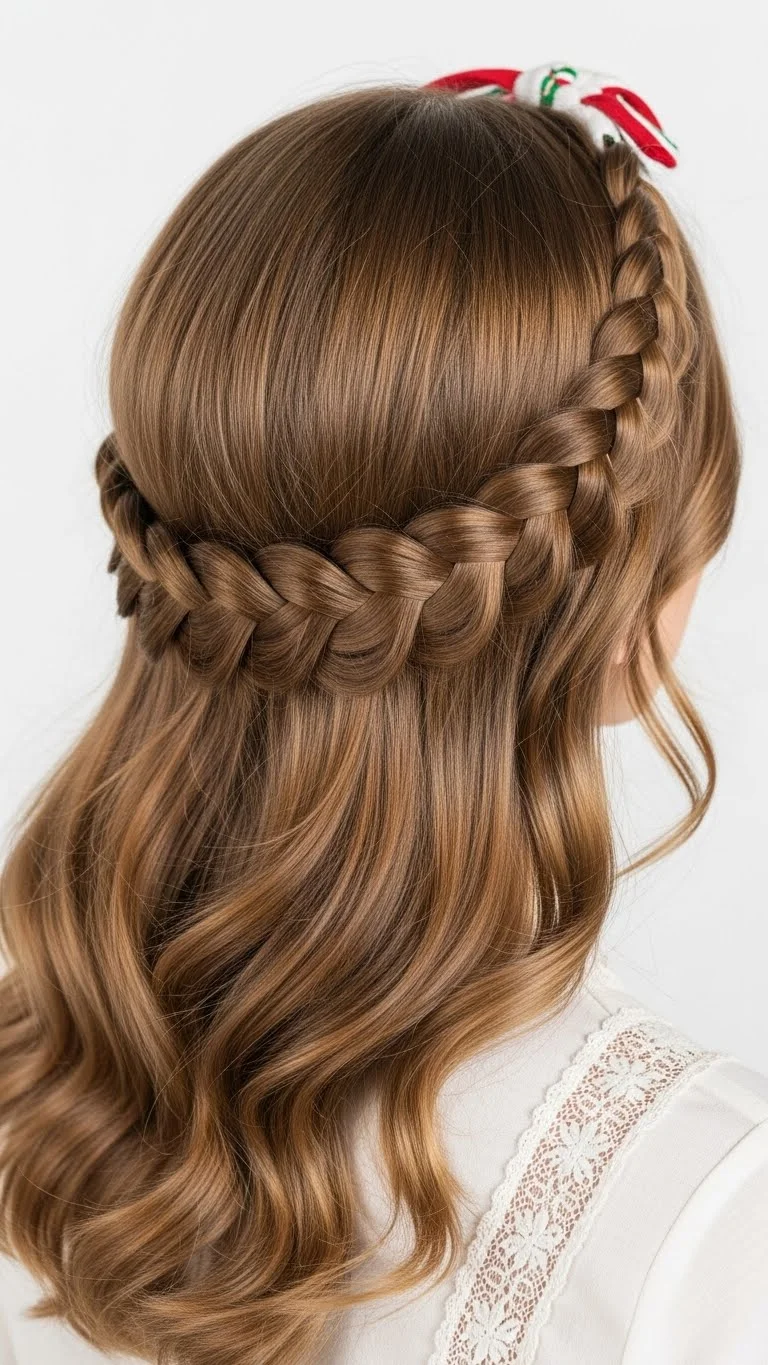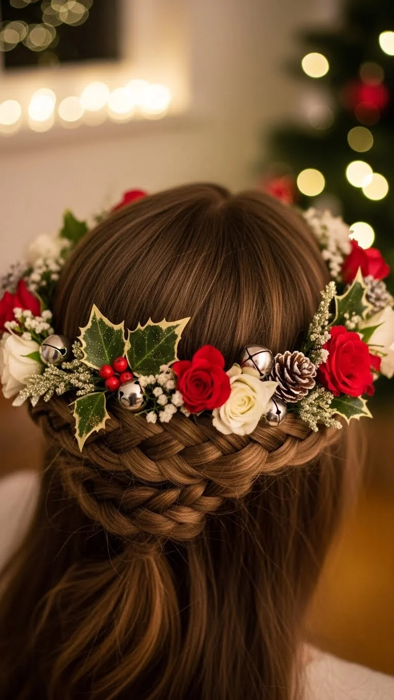 The crown braid offers a regal look perfect for special occasions. Braid the hair from the crown around your head and secure it with bobby pins. This style is especially lovely for formal events. For a holiday flair, add small festive decorations. It’s an effortless way to look graceful while still showcasing holiday creativity.