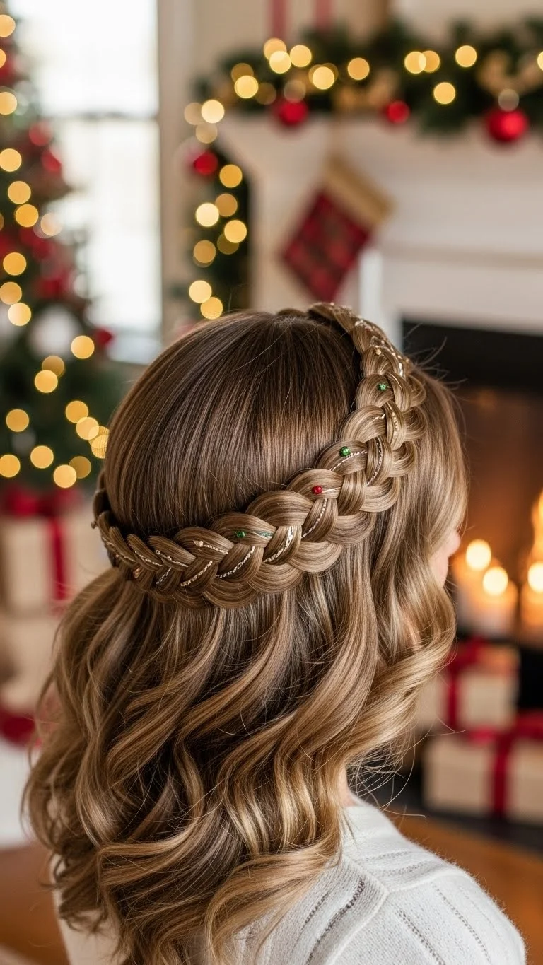 A braided headband is a whimsical choice. Braid a section of hair from one side and pin it back to create a headband effect. Let the rest of your hair fall in soft waves. This style adds an innocent and charming touch to your holiday look. For a festive appeal, match your headband with seasonal colors or decorations. It’s an adorable option for any holiday gathering!