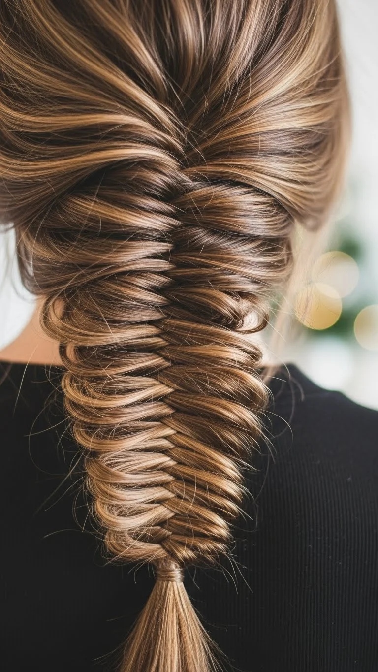 A fishtail braid looks detailed but is easy once you get the rhythm. Bring all your hair to one side. Split it in two sections and cross small pieces back and forth. Keep it loose for a fuller look. You can even braid just halfway and tie it off. Add a ribbon at the end if you want color. This works well for longer hair, but medium hair can also pull it off.