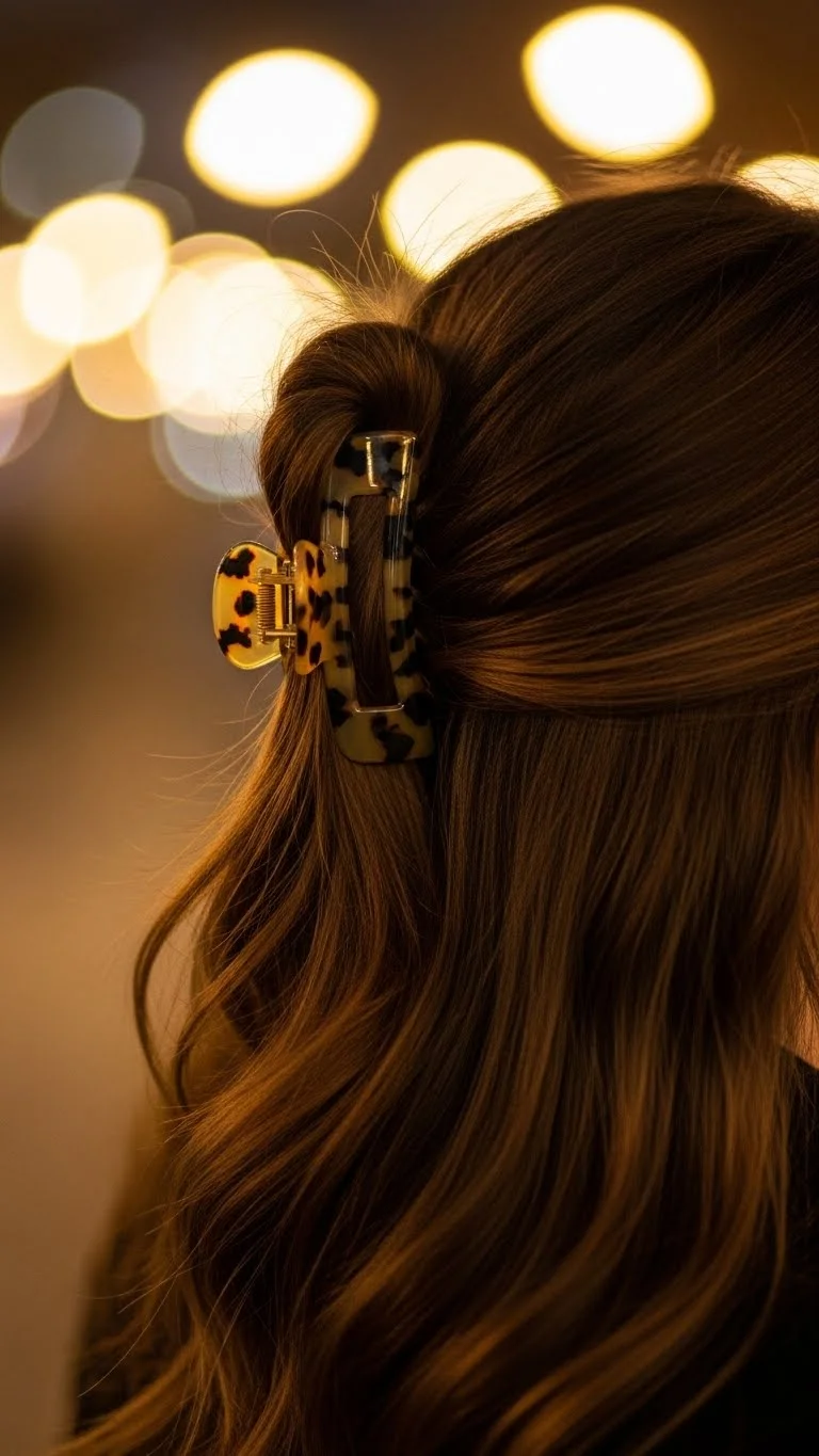 A mini claw clip offers a relaxed style with just one step. Gather the top section, twist lightly, and clip it. Add soft curls if you want shape. This works on straight or wavy hair. Dollar stores have cute holiday-themed mini clips. Keep it loose so it feels casual and comfortable during a long evening.