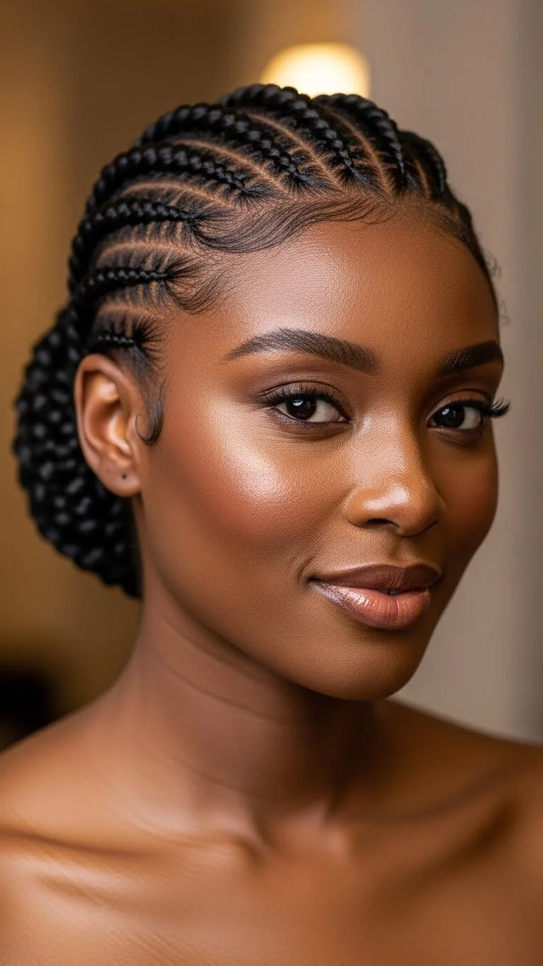 Straight back cornrows are clean, low-maintenance, and stay in place through long celebrations. Use a small amount of shine gel as you part each row. Keep them narrow for a polished look. Add extensions if you want more length, but it’s optional. Lay edges lightly with a small edge brush. This style works well under hats or scarves if you’re attending outdoor events. If you’re on a tight budget, do the rows larger since they require less time. Light hair jewelry such as gold cuffs instantly adds holiday spirit without extra cost.