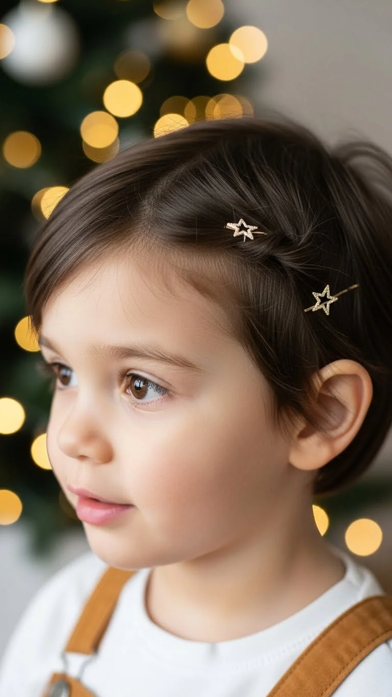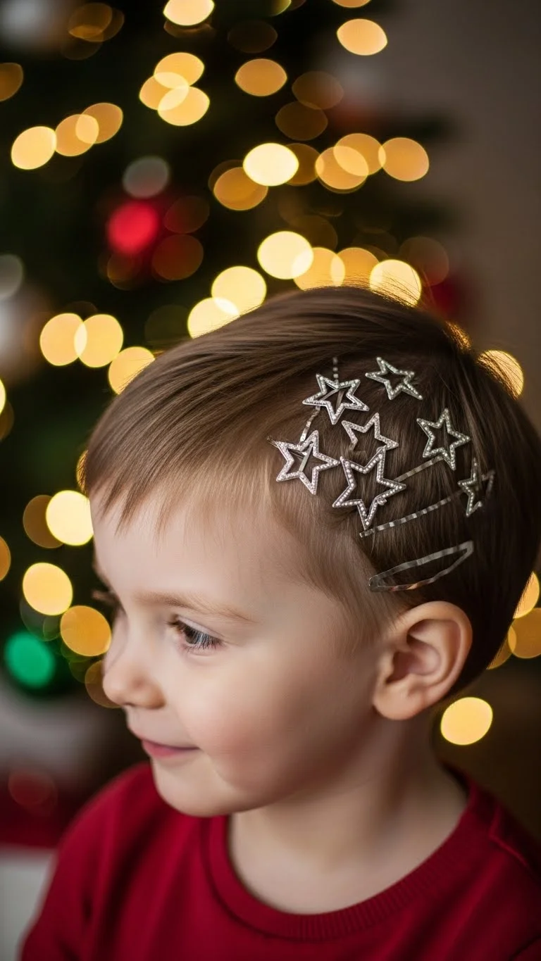 Decorate short hair with star-shaped clips for a playful holiday touch. Scatter a few across one side of the head or line along a braid. It’s fast, kid-friendly, and visually festive. Budget tip: Craft star clips using cardboard and glitter or purchase a small set for multiple hairstyles.
