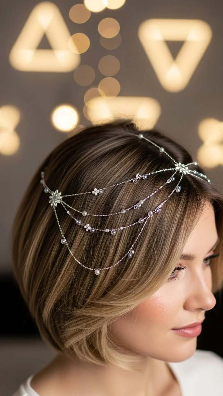 Create a hair chain with small clips or beads for holiday flair. Pin them along the front or sides for a playful effect. Works well with short layers or pixies. Budget tip: Use leftover beads from craft projects to make this look affordable and reusable.