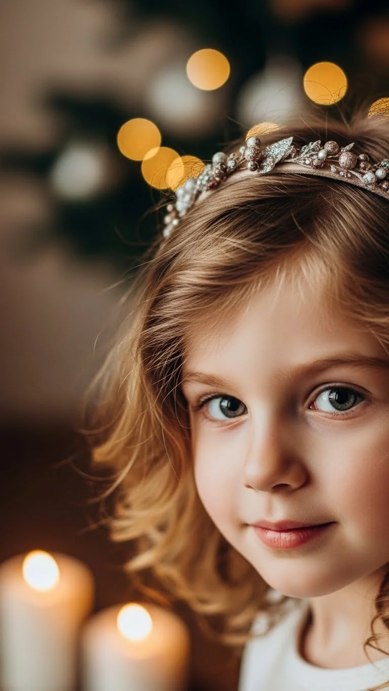A simple headband can change the whole look. Pair it with loose curls or waves. Choose soft fabric headbands so the child stays comfortable. If you don’t own a holiday-themed one, wrap a plain headband with ribbon. This style works for all lengths. For short hair, the headband becomes the main feature.