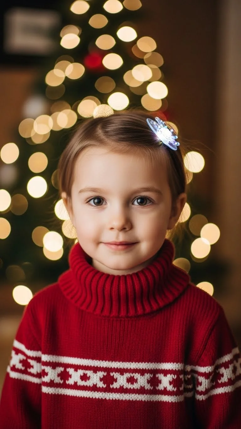 You can buy small plastic clips shaped like lights that don’t require batteries. Clip one or two near the front. Keep the rest of the hair simple—either loose, in a ponytail, or lightly curled. This option is fast and perfect when you want something festive without too many steps. It’s lightweight and child-friendly.