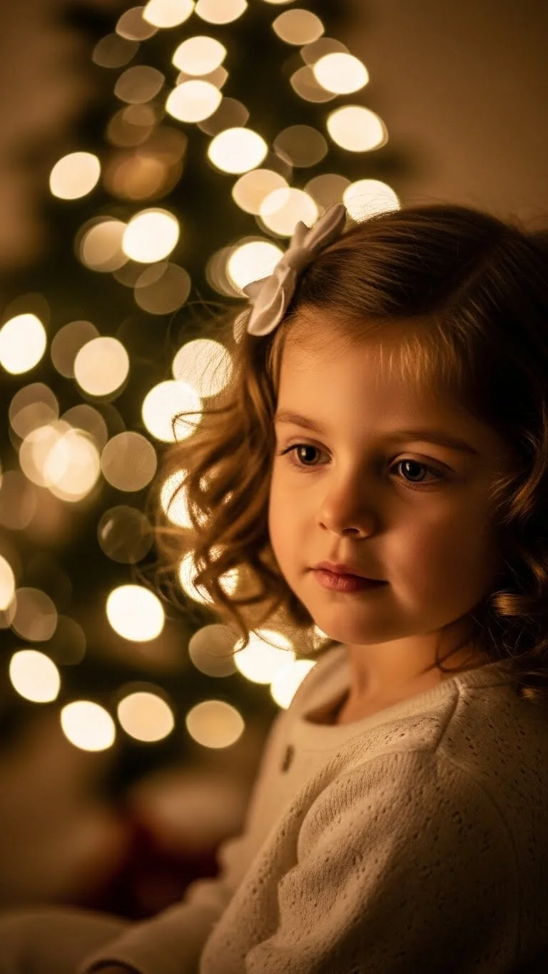 Loose curls are perfect for holiday photos. Use overnight socks or a heatless curling band to keep it gentle. In the morning, shake out the curls and add a small white or gold clip. This method costs nothing and avoids heat tools. For shorter hair, curl just the front sections to add shape. If the curls look too big, smooth them with a little conditioner on your fingertips. This style feels airy and comfortable, great for kids who don’t want many accessories.