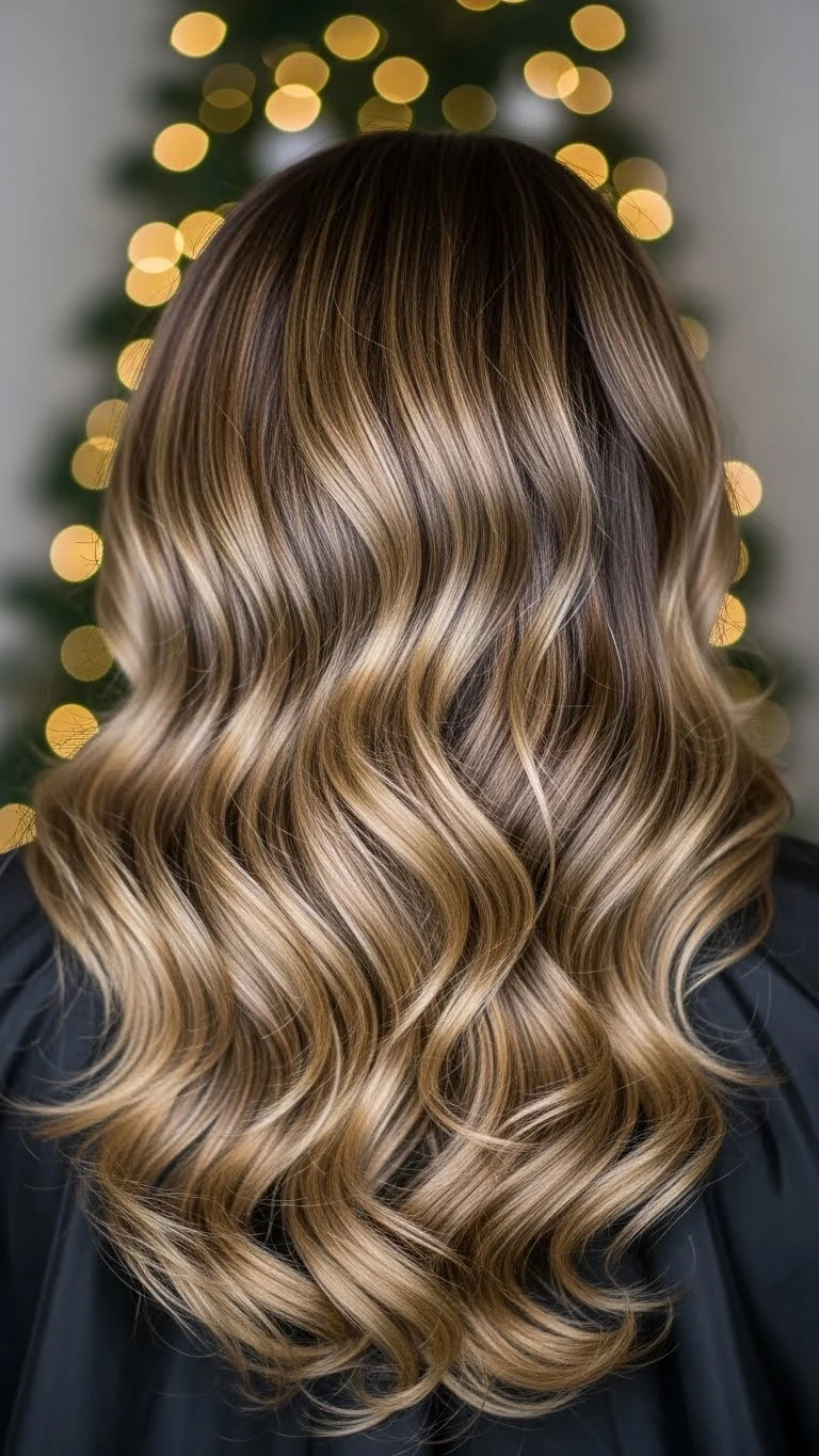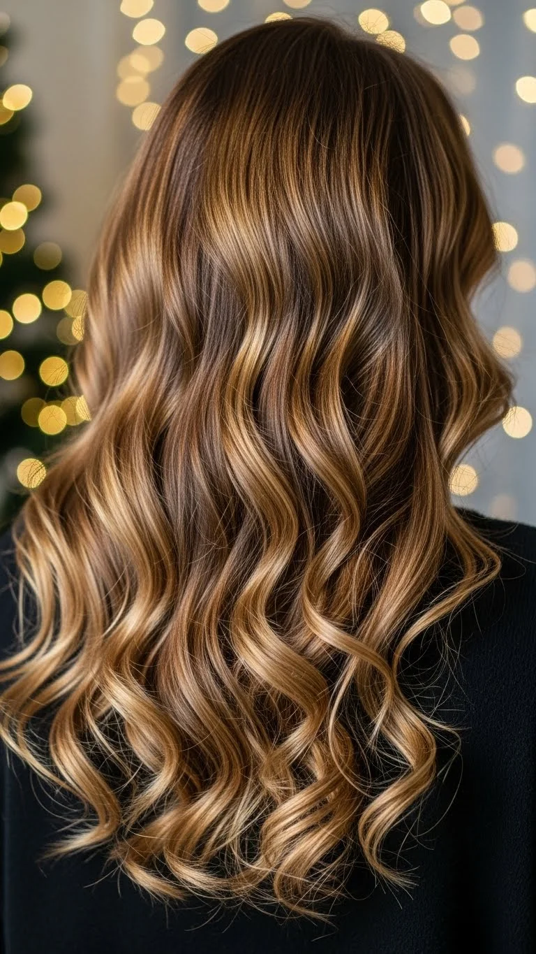Mermaid waves give your hair a soft, beachy texture even in winter. Use a triple-barrel waver or braid your hair overnight for a heatless version. Shake out the waves with your fingers rather than brushing them. Add a metallic clip near the part for shine. This style adds movement without extra steps. A budget-friendly salt spray helps with texture. It works well with thick or fine hair and holds up through long celebrations.