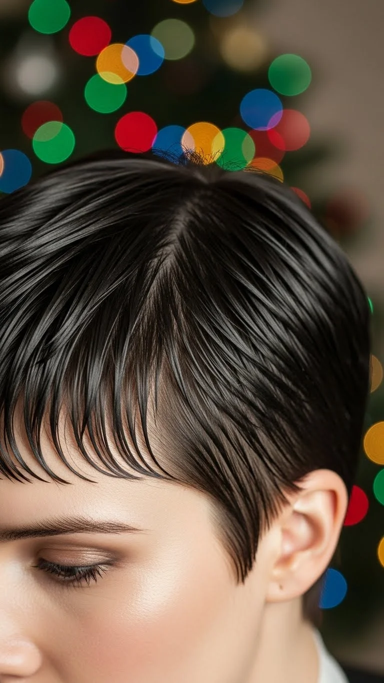 A wet-look pixie feels bold for a holiday gathering. Use a styling gel mixed with a touch of conditioner to keep it soft. Comb it back or to the side. Budget tip: Many drugstore gels work just as well as pricier versions. Start small and add more if needed. Define subtle lines with a fine-tooth comb. Let the style air-dry so it sets naturally. This look remains controlled all night and requires little adjusting.