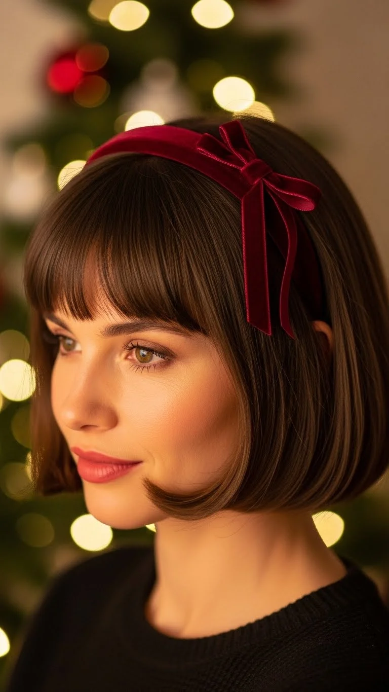 - French-Girl Micro Bob with Velvet Ribbon Headband