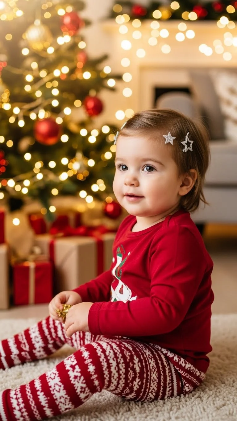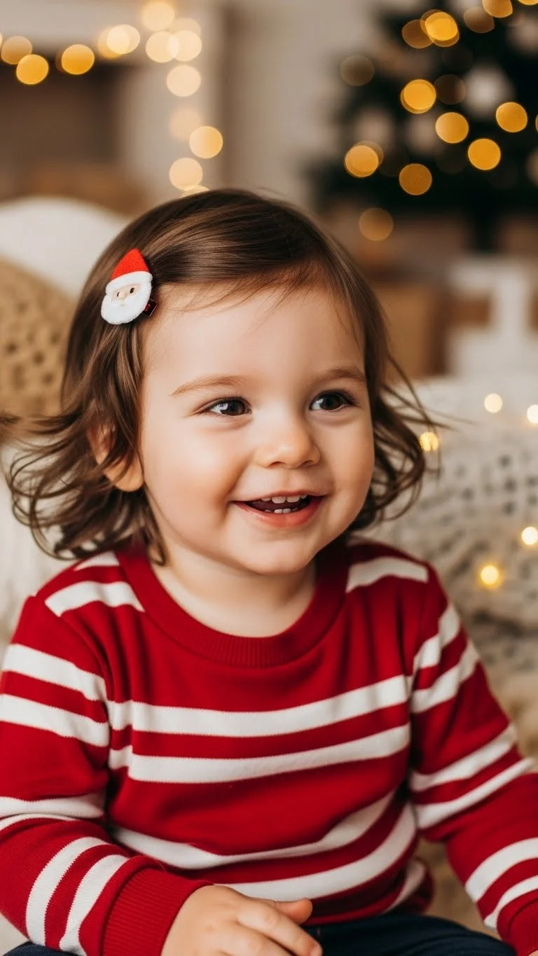A side part changes the look quickly. Part hair gently and secure one side with clips. Star or bow shapes add Christmas style. This works for fine hair and short lengths. Parents enjoy how simple it feels. Clips can be removed easily for naps. Multipack clips help keep costs low.