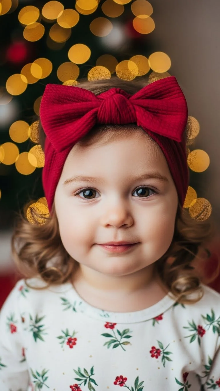 Loose curls paired with a bow headband feel gentle and cute. Parents like the comfort level. Fabric headbands are easy to make at home. This style works well for holiday photos.