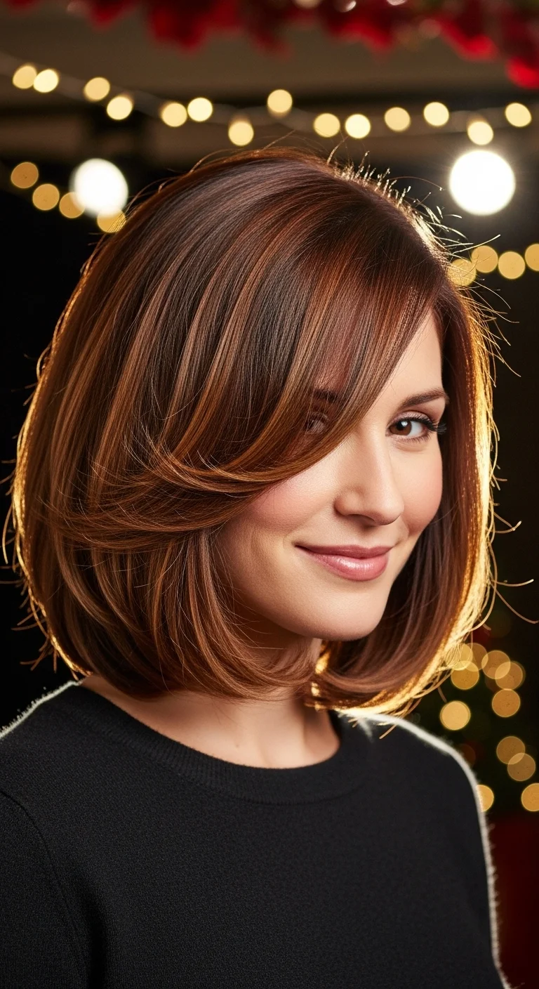 If your hair is shoulder-length, flip the ends outward for a retro vibe. Use a flat iron to bend the ends. Add a small bow clip near the ear. This style takes only a few minutes. Ideal for days when you want something easy but seasonal. Works great with layered cuts.