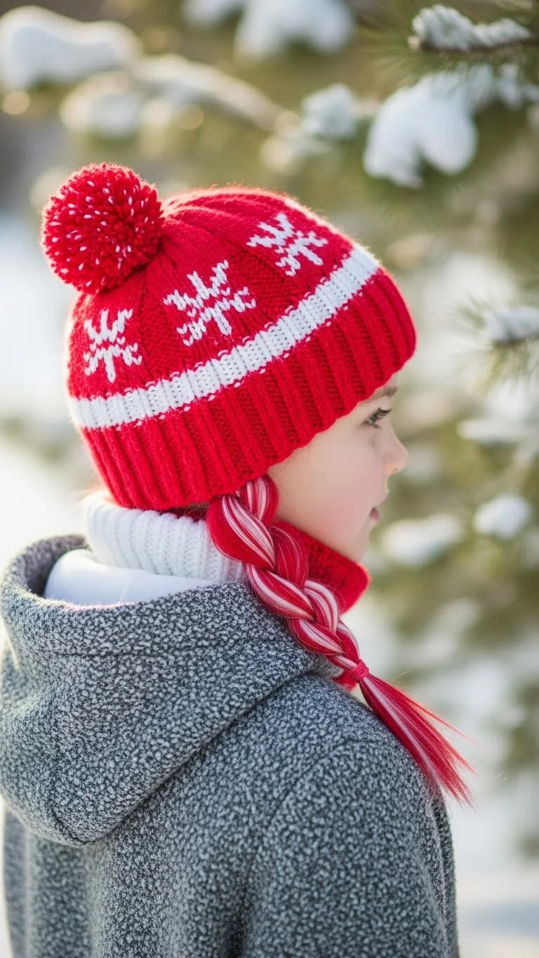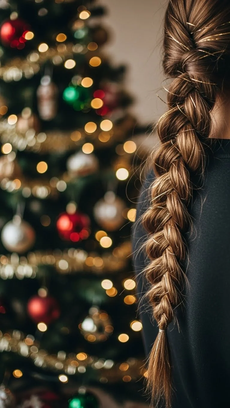 If it’s chilly outside, pair a warm beanie with a simple side braid. It keeps hair tidy under the hat and prevents tangles. No extra accessories needed. You can braid loosely for comfort. This look is great for outdoor Christmas markets, walks, or trips to see lights.