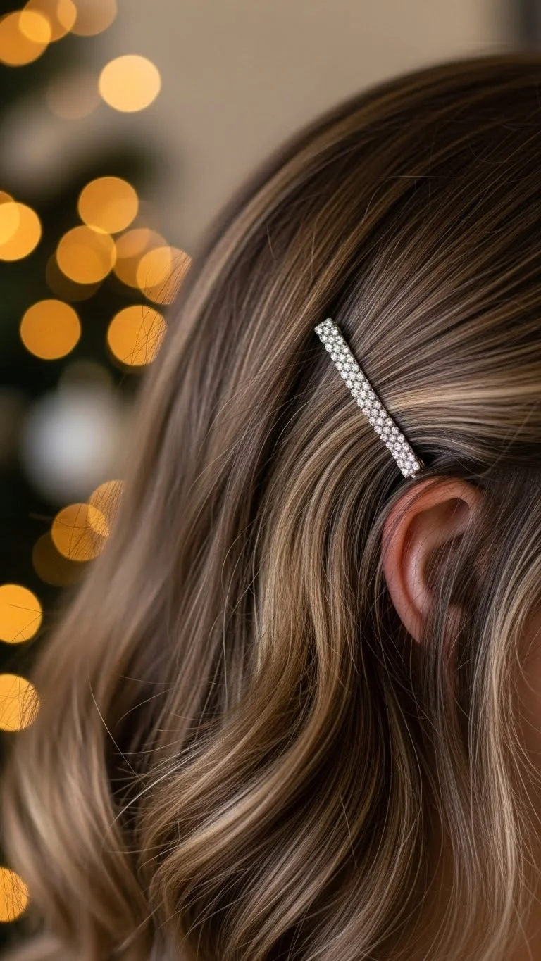 Sweep hair to one side and secure with a glittery clip. It’s simple but charming. Works great for shorter cuts or when you’re rushing out the door. You can DIY sparkle clips using old bobby pins and craft glitter. This style keeps hair out of the face during festive meals and crafts.