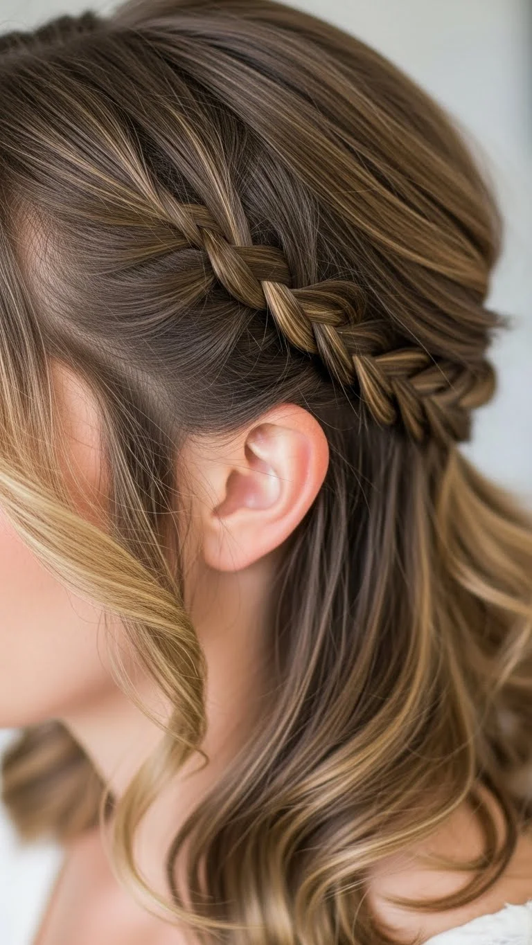 Make a small braid on one side and pin it behind your ear. Leave the rest of your hair loose. This small detail adds texture without taking over your whole look. Works well with straight, wavy, or curly hair. Add a holiday-themed pin above the braid if you want flair.