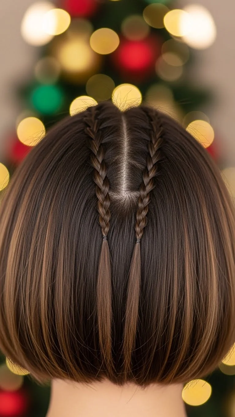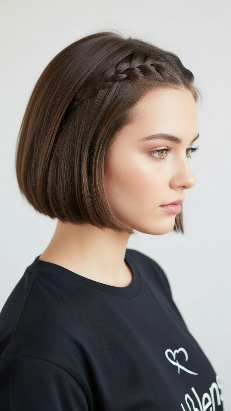 Mini braids add charm to a bob without much effort. Braid two thin front sections and pin them back with small metallic clips. You don’t need strong braiding skills—messy braids are cute too. Spray a little water before braiding so the hair grips. This is a great trick to add texture to straight hair. It’s perfect for parties because it looks sweet and intentional with very little work.