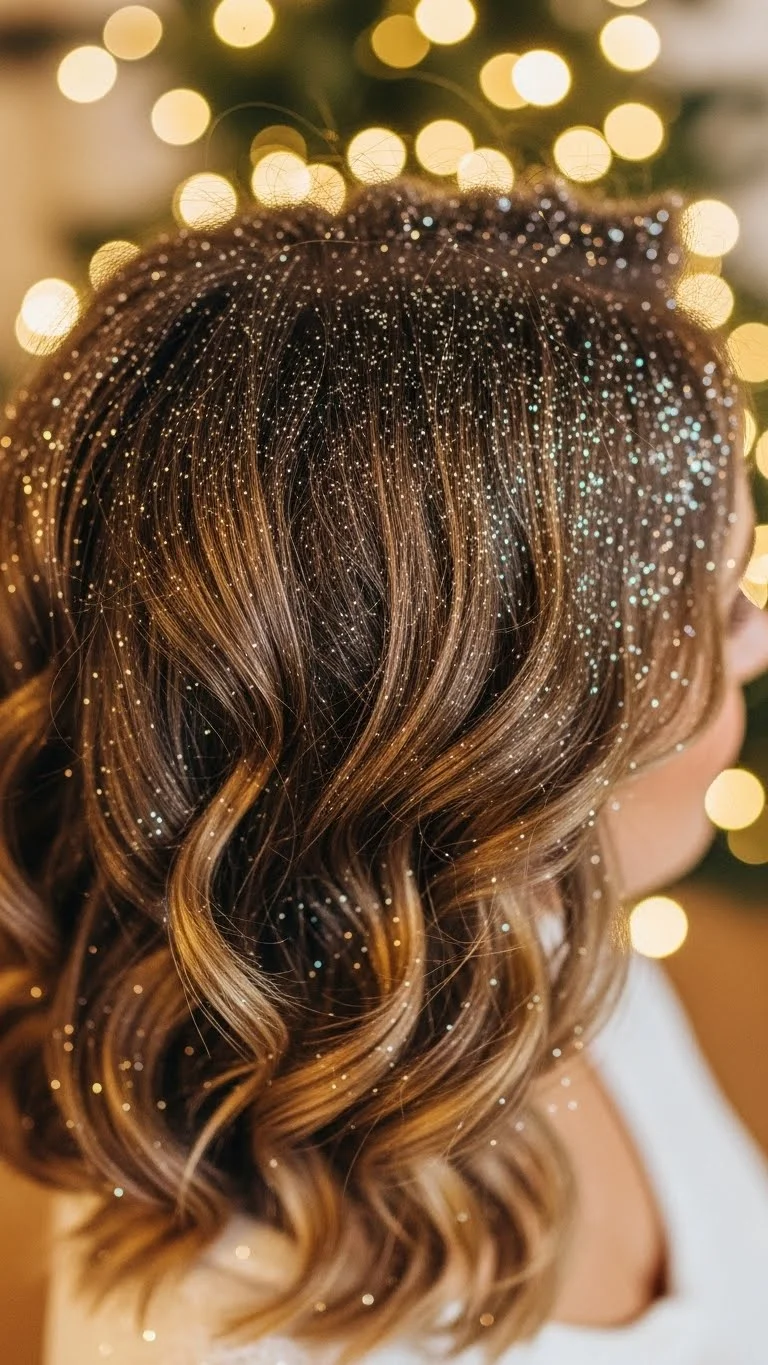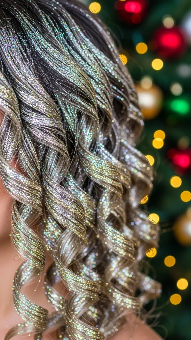 Tinsel-dipped curls are festive and fancy! After styling curls, dip curls in glitter or use tinsel for sparkle. It’s a glamorous look ideal for holiday parties. Make sure to choose non-permanent glitter to keep your hair happy and healthy. You’ll light up the room with this dazzling hairstyle!