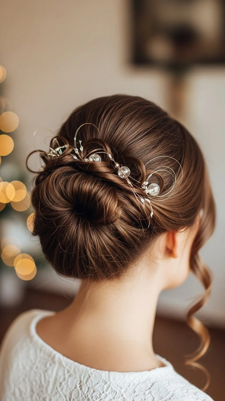 For a chic look, try a sparkly curly updo. Start by curling hair and then gather it all into a messy bun. Use hairpins and sprinkle some glitter for that dazzling effect. This hairstyle works wonders for formal events or family gatherings. Use a light hairspray to hold the curls together. It’s a quick and stylish way to make your look festive!
