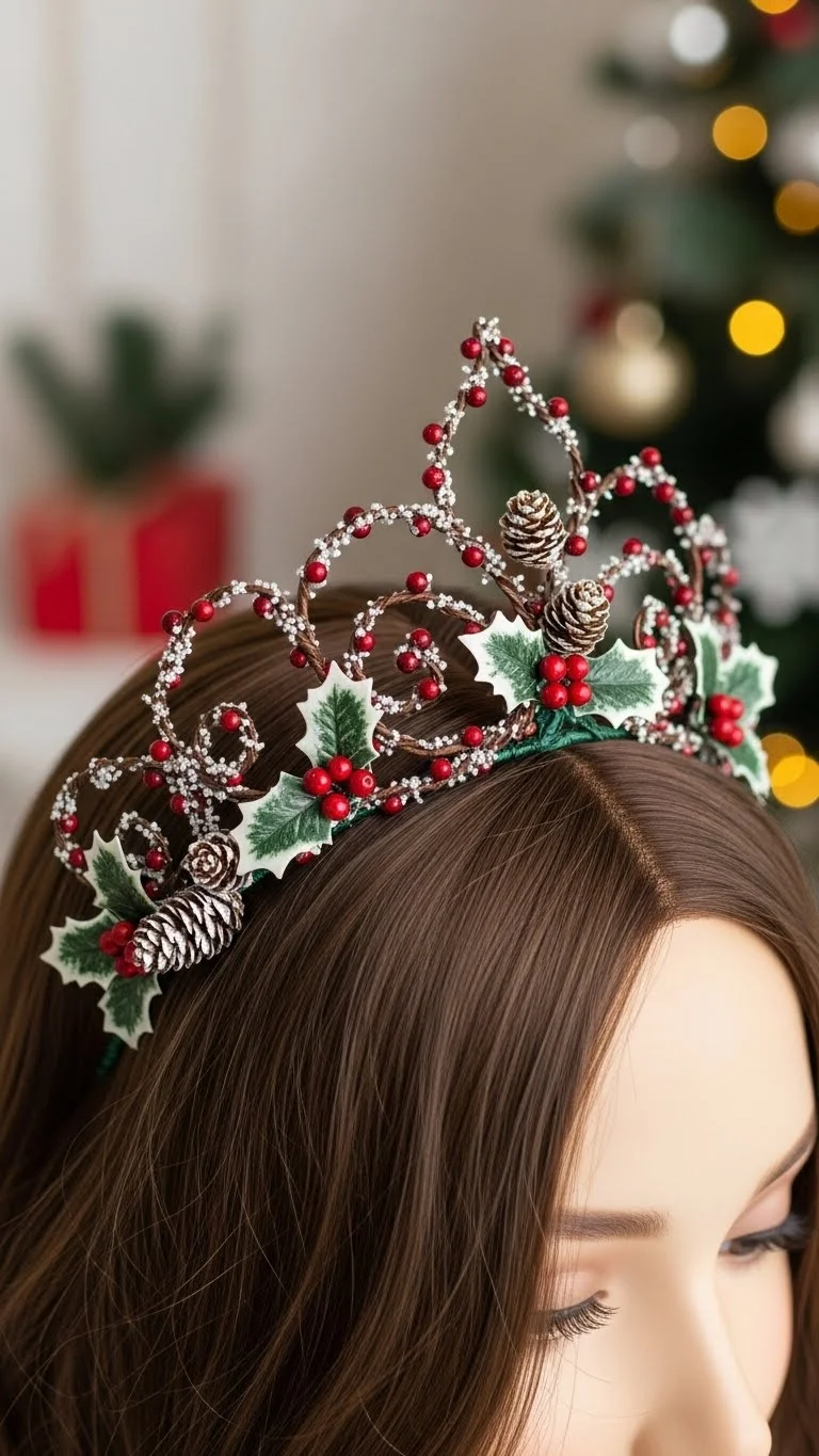 Get playful with a curly Christmas lights headband! Style curls around a headband, adding mini LED lights for fun. This festive hairstyle is bound to bring smiles and laughter at any party. Just ensure the lights are battery-operated and safe for hair. This style is budget-friendly yet extraordinary for holiday celebrations!