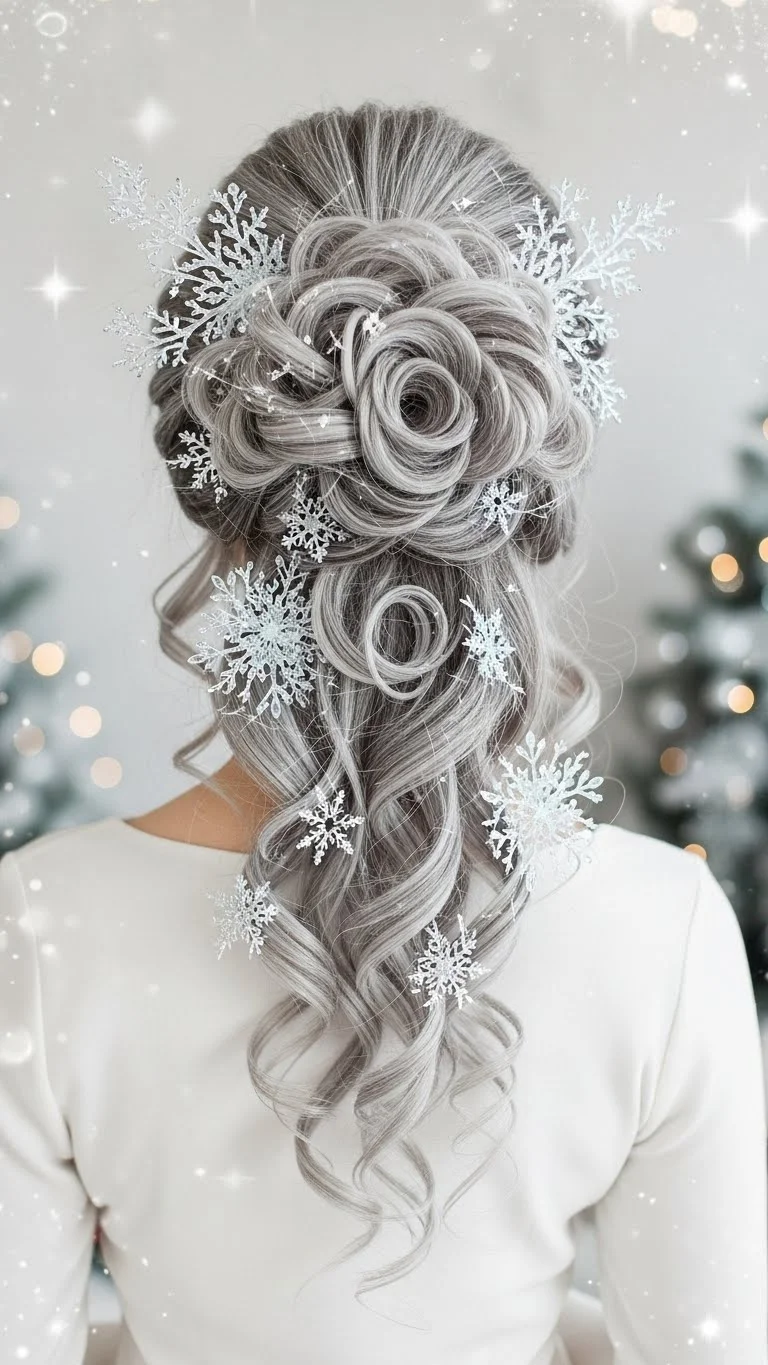 For a Frozen-inspired look, create frosty curls! Style hair with curls and use shining sprays to mimic ice. This look is perfect for fans of winter tales and ideal for holiday gatherings. Use soft blue or silvery accents to enhance the frozen theme. It’s a fun way to express holiday creativity!
