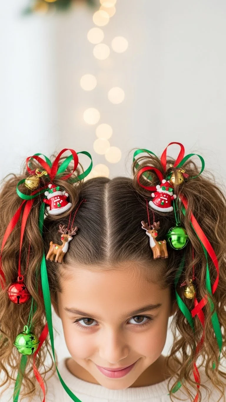 Christmas tree pigtails are fun and creative! Start by separating hair into two sections. Secure each section into a high pigtail. Decorate with mini ornaments, colorful ribbons, or even tinsel. This style adds a festive touch and is perfect for holiday parties. Kids love adding their personal flair, making it a fun DIY project. Just make sure to keep the ornaments lightweight to avoid pulling on the hair!