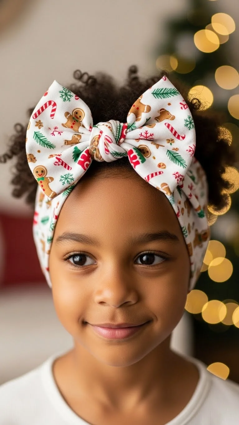 A holiday headwrap works for all hair textures. Choose a soft cotton wrap with seasonal colors. Tie it into a bow or knot at the top. It hides flyaways and adds charm instantly. Cotton wraps are comfortable and inexpensive. This look works on braids, curls, or loose hair. Kids appreciate how it feels gentle while still looking dressed up.