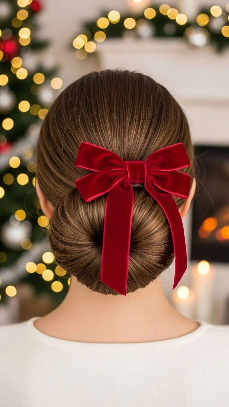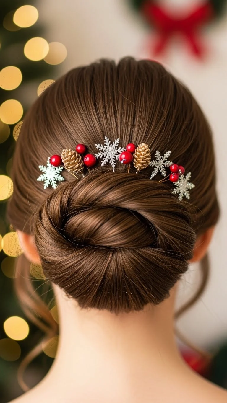An elegant chignon is perfect for formal holiday events. Gather your hair into a low bun at the nape of your neck and secure with pins. Wrap a ribbon or bow around the base for added flair. This look is sophisticated and works for office parties or family gatherings, keeping you stylish and polished.