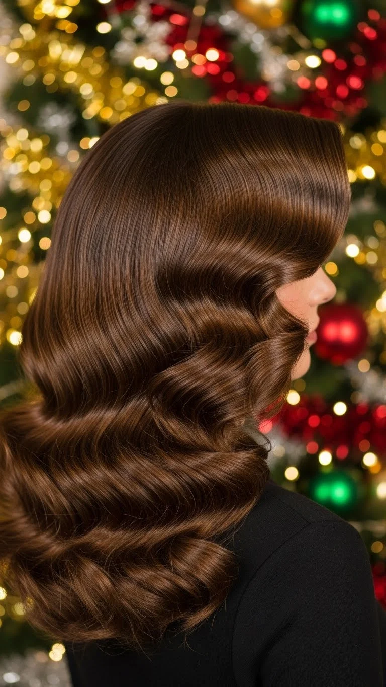 Hollywood waves are perfect for adding glamour to your holiday hairstyle. Use a large barrel curling iron to create large, soft waves. Pin them in place while cooling for extra hold. This sophisticated style is perfect for Christmas parties, pairing beautifully with a festive dress or sparkling accessories!