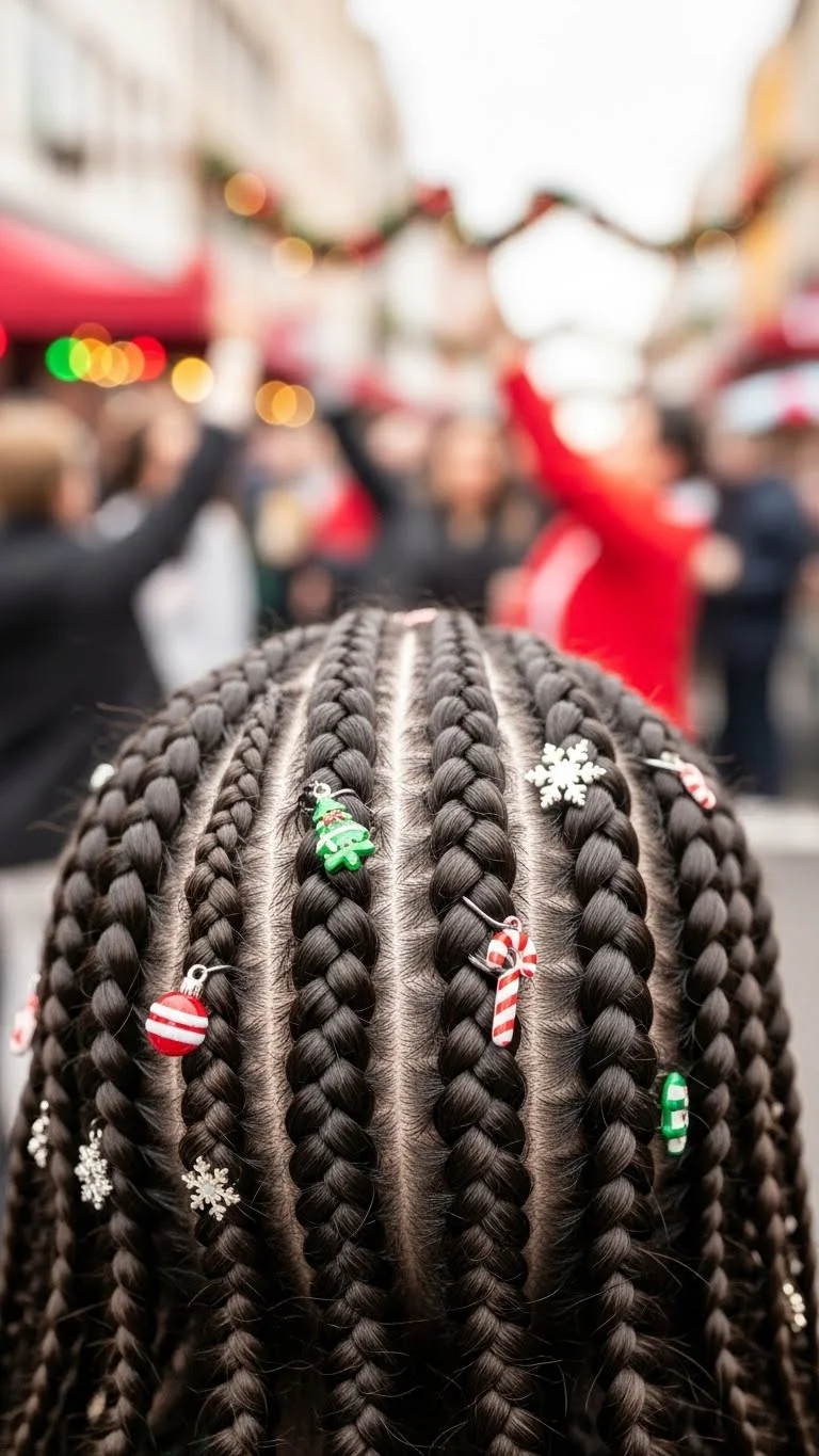 If you’re feeling adventurous, try urban braids adorned with holiday charms. Braid your hair into sections, incorporating tiny ornaments or beads for sparkle. This unique hairstyle adds an edge to your Christmas look and is great for casual gatherings. It’s fun, stylish, and perfect for the holiday spirit!