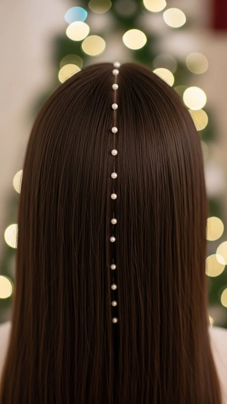 1. Sleek Middle Part with Pearl Pins
