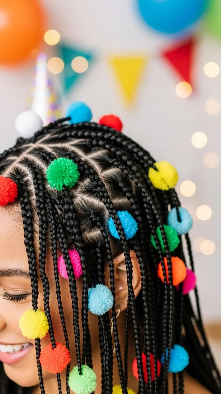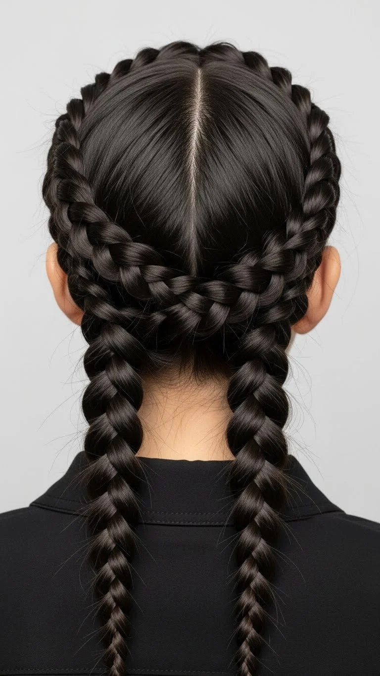 Create two braids on either side of the head. Pin across the crown. This keeps hair secure and festive. Works best on long hair. Add small ribbon accents for a holiday hint. Comfortable and reusable.