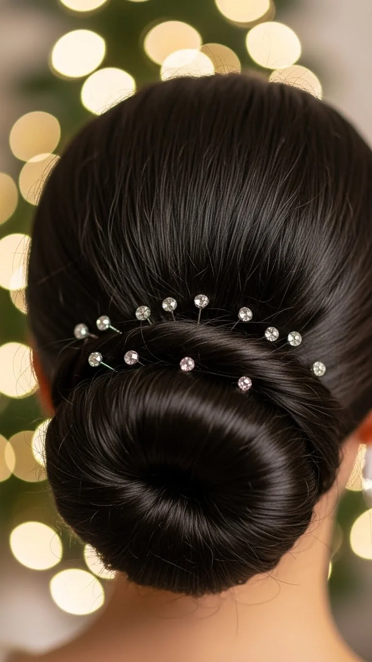 1. Low Chignon with Sparkle Pins