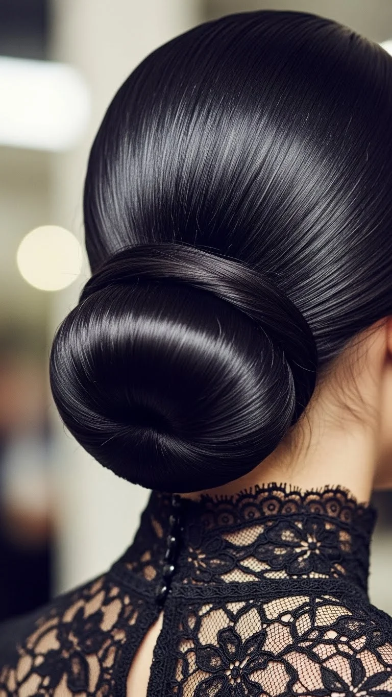 The sleek low bun is a classic choice for high-neck tops or statement jewelry. It keeps hair away from your face to let your features shine. Start by brushing your hair back with a small amount of hair gel or water. Secure it into a ponytail at the nape of your neck. Twist the length into a tight coil and wrap it around the base. Use affordable U-shaped pins to hold the bun in place. This prevents the “pincushion” look of standard bobby pins. For a DIY shine, apply a tiny drop of olive oil or coconut oil to the surface. It smooths flyaways instantly. This style works perfectly with a turtleneck or a dress with an intricate collar.