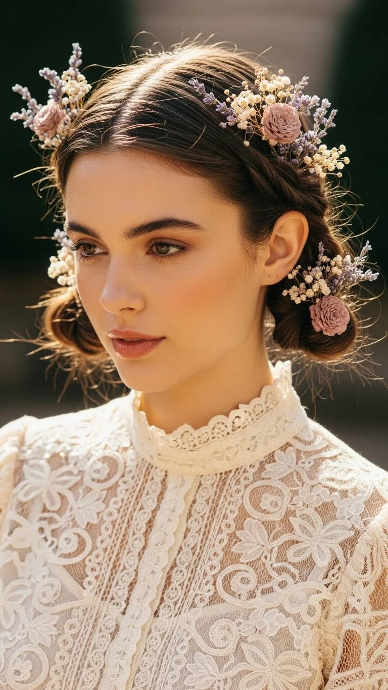 A twisted crown is a quick alternative to braiding. Take two sections of hair from your temples. Twist them tightly away from your face. Bring them together at the back of your head and tie them with a small elastic. For a budget-friendly “wow” factor, tuck a small sprig of baby’s breath or a tiny flower from your garden into the twist. This looks incredible for an outdoor date or a garden party. It keeps the hair secure and looks very intentional with a lace or silk blouse.