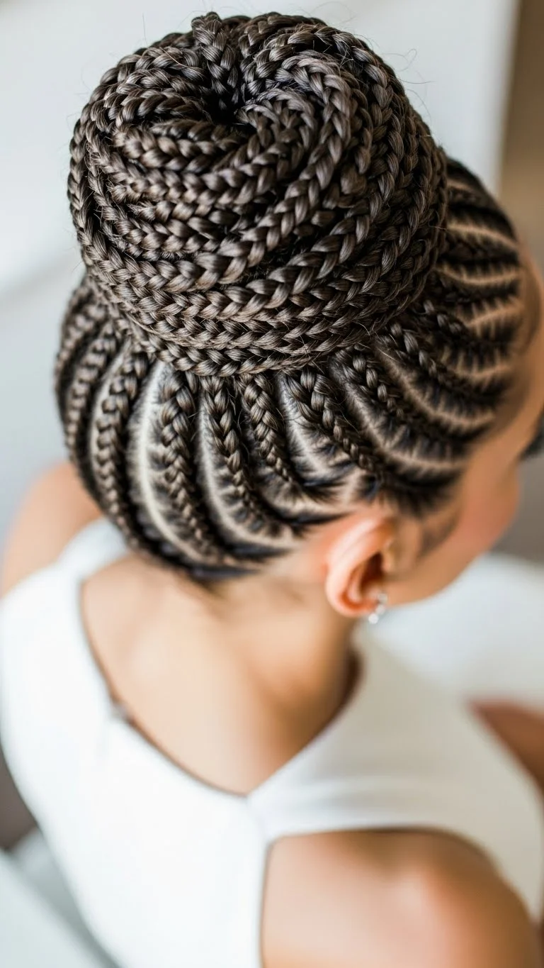 Combine strength and elegance with a braided bun. Put your hair in a high ponytail first. Divide the ponytail into three sections and braid each one. Wrap the three braids around the base together. This creates a very textured, expensive-looking bun. It is much more secure than a standard bun because the braids hold their shape. This is perfect if you have thick hair that usually falls out of updos. It pairs well with sleeveless dresses to show off your neckline.