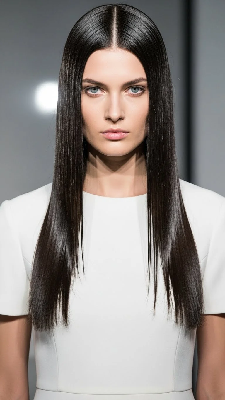 “Glass hair” is all about shine and straight lines. This works best with minimalist outfits and monochromatic colors. Use a flat iron to get your hair as straight as possible. Work in very small sections. The secret is the finish. Apply a lightweight shine spray or a tiny amount of hair serum. Comb it through to ensure every strand is coated. This style looks very high-end but only requires a flat iron and a bit of product. It is a great way to look “put together” with very little effort.