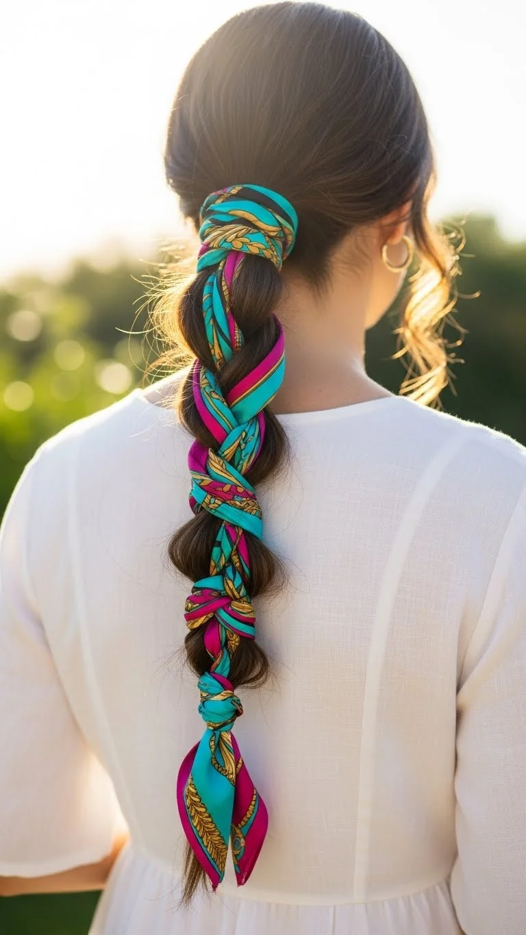 If you want to add a pop of color without buying new jewelry, use a silk scarf. You can find these at thrift stores for very little money. Tie the scarf to your ponytail holder and braid it into your hair like it is the third strand. The fabric adds instant volume and a high-fashion feel. This works wonders for simple, neutral-colored outfits. It also protects your hair from the wind if you are on a boat or a rooftop. It is a very easy way to look like a style expert.