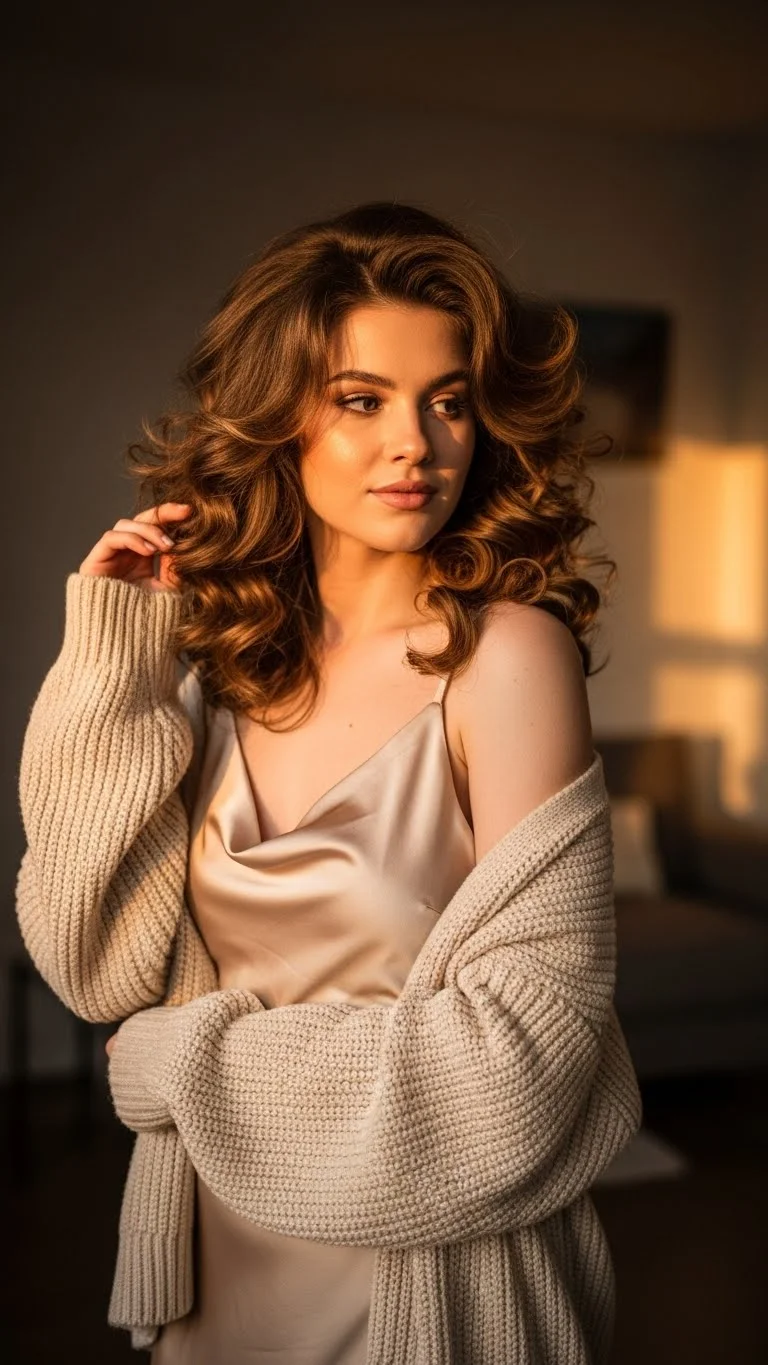The 90s blowout is back and very flattering. It provides a frame for your face and looks expensive. You can do this at home with a round brush and a blow dryer. Focus on lifting the hair at the roots. For a budget-friendly hack, use large Velcro rollers on damp hair. Let them sit while you do your makeup. When you take them out, you’ll have massive volume. This style matches a cozy cardigan and jeans or a simple midi dress perfectly.