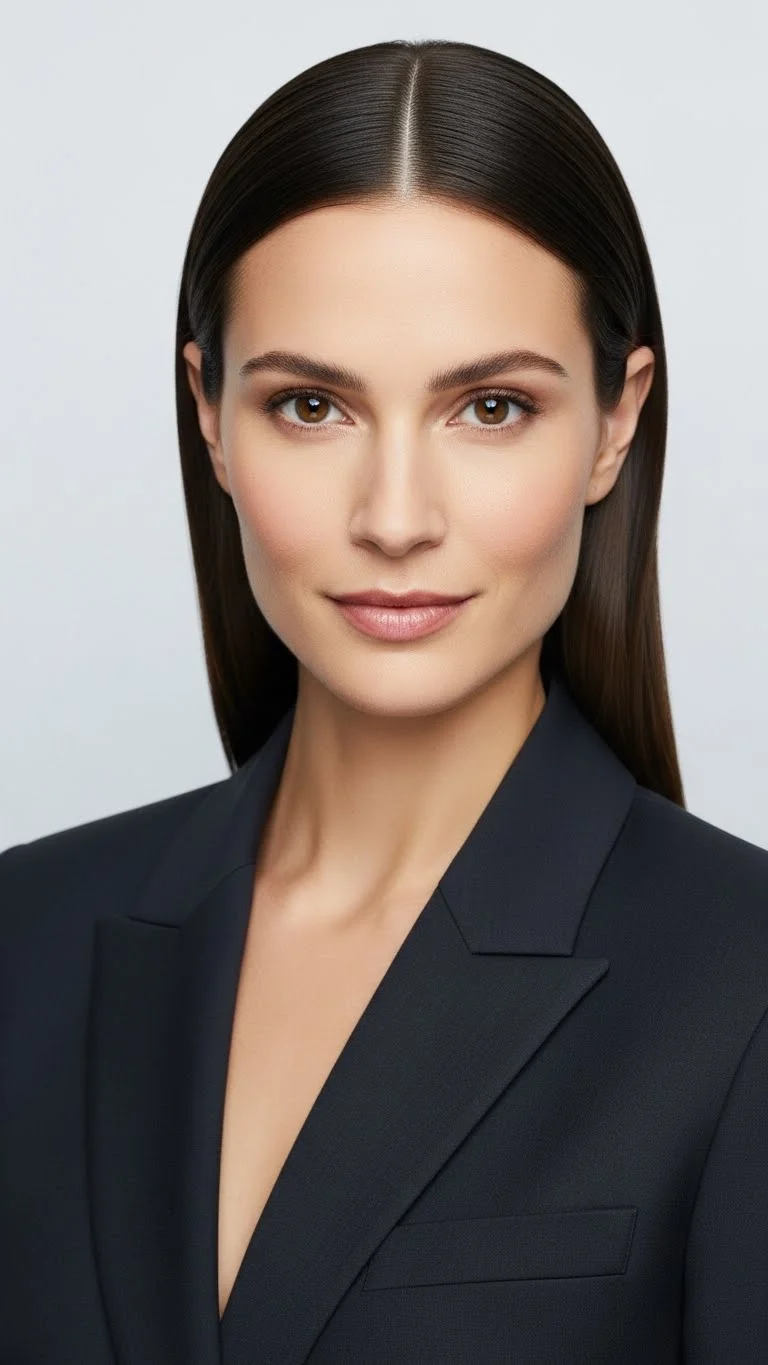 This is a power move hairstyle. It is very “runway” and minimalist. Part your hair exactly in the middle. Use a bit of pomade or wax to smooth down any flyaways. Tuck both sides behind your ears and let the rest of the hair hang behind your shoulders. This shows off your jawline and your earrings. It looks best with structured clothing like a blazer or a crisp button-down shirt. It’s the ultimate “cool girl” look.