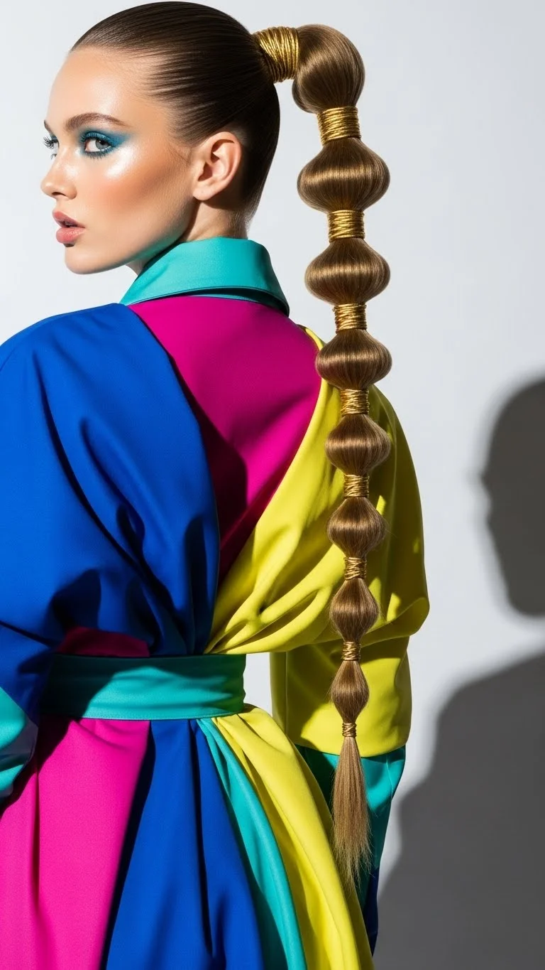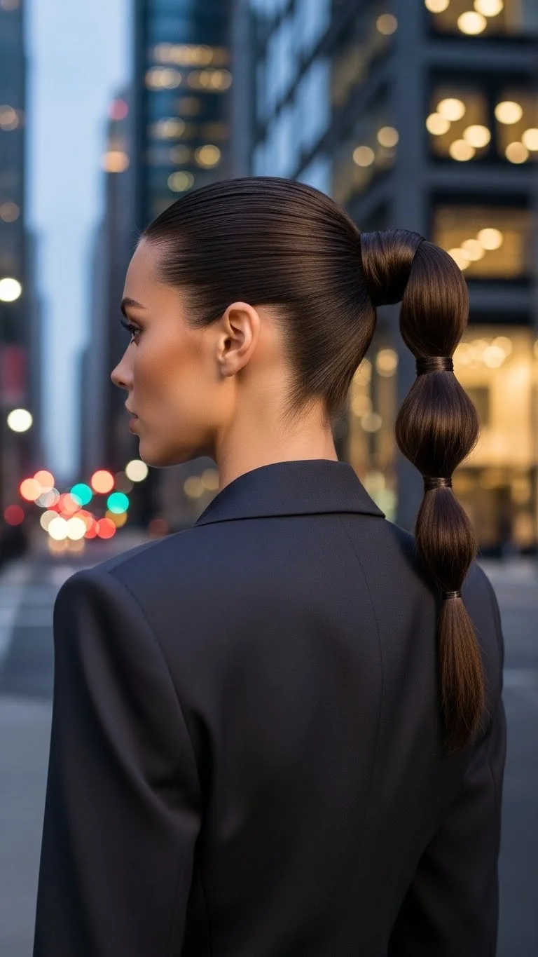 The bubble ponytail is playful and trendy. It works best with modern, colorful outfits or street-style looks. Start with a high or mid-height ponytail. Every two inches, add another small elastic band. Gently pull the hair between the bands to create a rounded bubble shape. You can use colored elastics to match your outfit or clear ones for a subtle look. It is a very easy way to make a basic ponytail look like you spent an hour on it. This style is also very durable for long evenings.