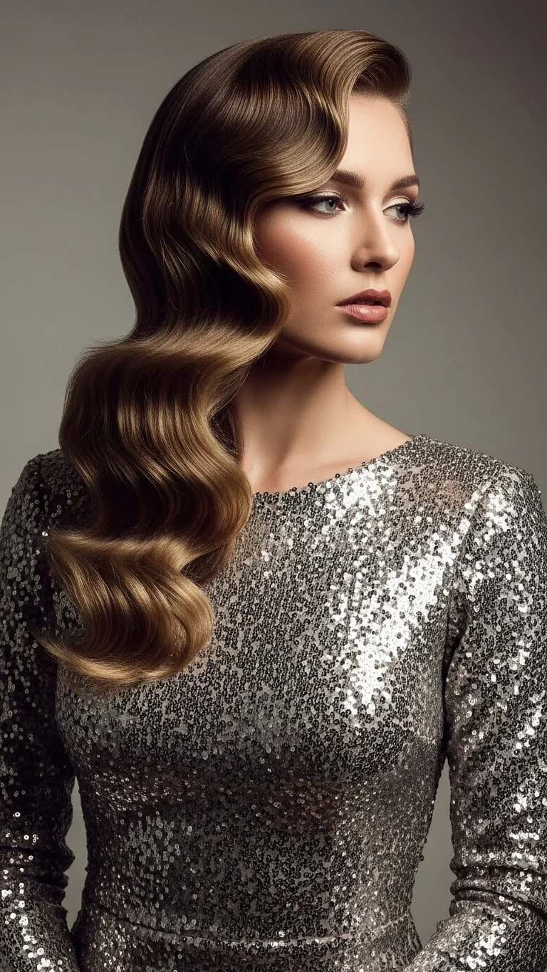 This style screams “glamour” and fits perfectly with a sparkly cocktail dress. Create a deep side part using the arch of your eyebrow as a guide. Smooth one side back behind your ear and secure it with a hidden bobby pin. On the side with more hair, create large curls that all turn toward your face. Once they cool, brush them together so they form one solid wave. You can use a bit of hairspray on a toothbrush to smooth the part line. It is a simple trick used by professionals to handle stubborn baby hairs.