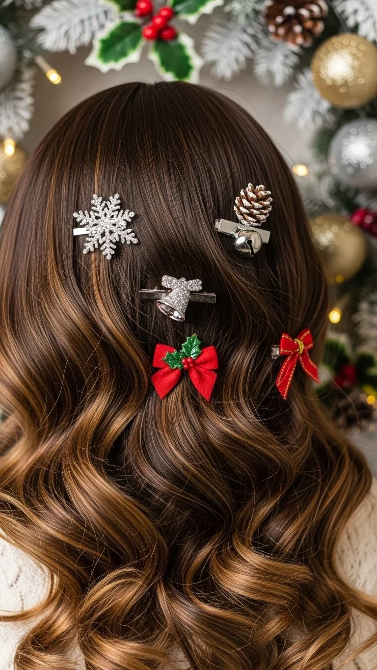 1. Cascading Curls with Holiday Clips