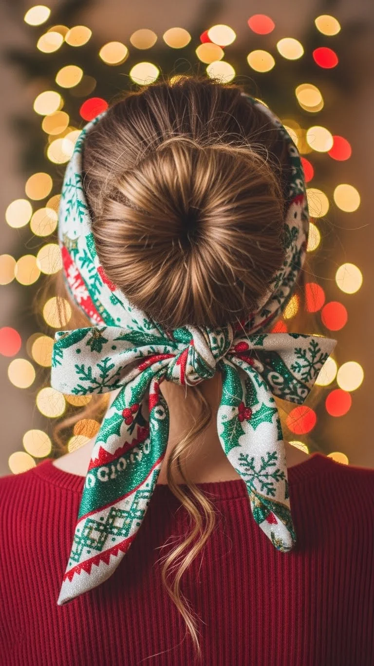 2. Messy Bun with a Festive Scarf