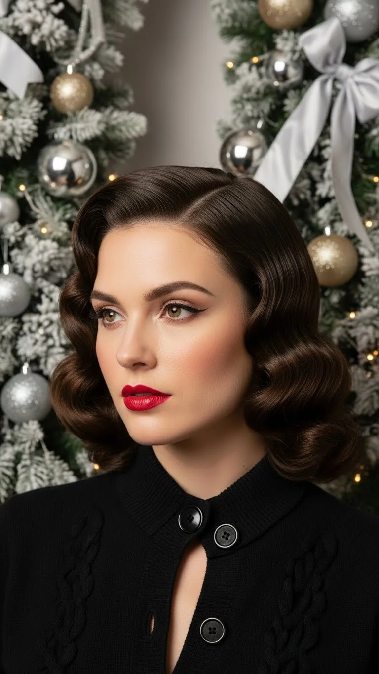 Channel the glamour of yesteryear with vintage finger waves. Use hair gel and a curling iron to create this retro look. Perfect for formal gatherings, this hairstyle adds sophistication while celebrating the holiday spirit.