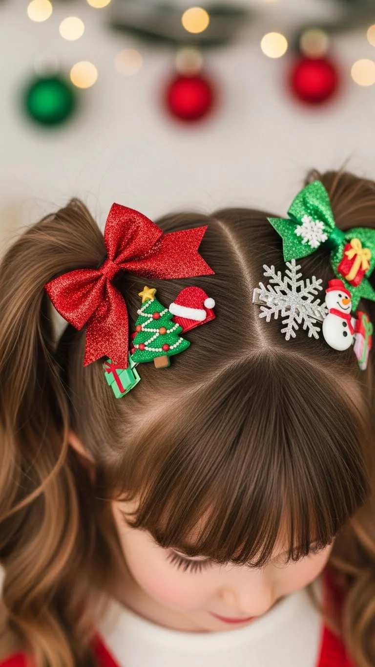 6. Cute Pigtails with Holiday Clips