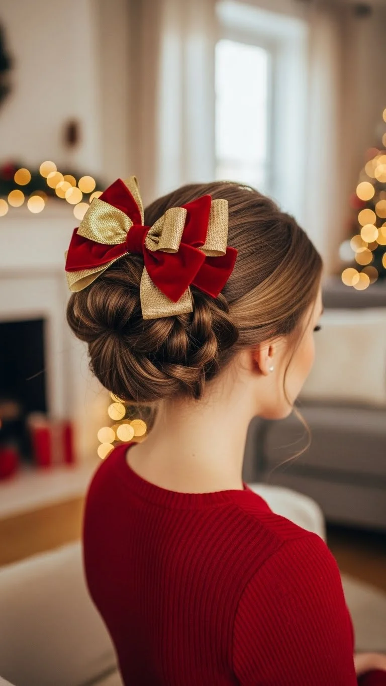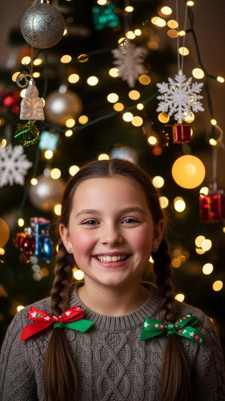 The half-up, half-down style is elegant yet fun. Gather the top half of your hair and secure it with a festive clip or bow. Leave the rest of your hair flowing for a charming look. For added sparkle, sprinkle some glitter on your hair, or use glittery clips. This hairstyle strikes a balance between festive and sophisticated, making it ideal for all holiday occasions.