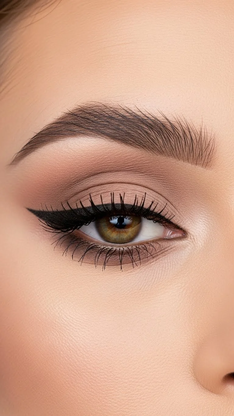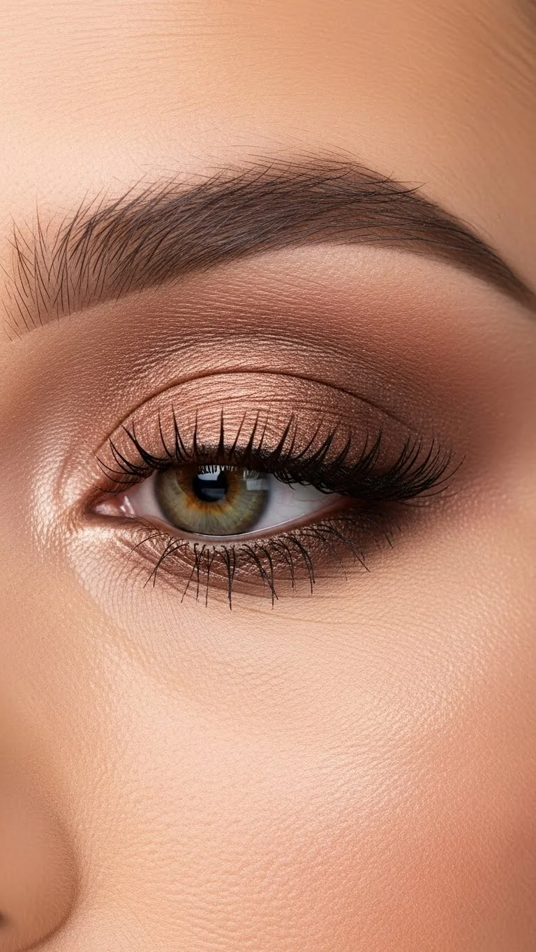Matte shadows can feel soft and inviting. Use one matte neutral shade across the lid. Skip shimmer. Focus on lashes. This look feels calm and confident. It works for everyday wear and suits all ages.