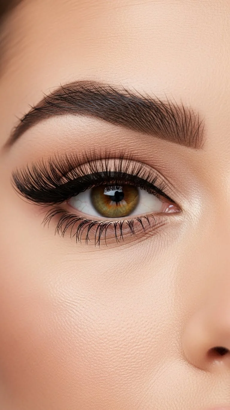 This style puts attention on lashes rather than shadow. Start with a matte brown shadow swept lightly across the lid. Keep it thin and close to the crease. Use any neutral brown from a basic palette. Tightline the upper lash line with a brown pencil. This adds depth without harsh contrast. Curl lashes slowly. Apply mascara in two light coats, wiggling at the base. Focus on separation instead of thickness. If false lashes feel expensive, cut a cheap strip lash into small sections and place them only at the outer corner. This creates a lifted effect with less effort. Skip heavy lower lash makeup. A touch of concealer under the eyes keeps things bright. This look feels calm, warm, and inviting. It works well for everyday wear and office settings. Brown tones also flatter many skin shades and eye colors. It proves that flirtiness can feel relaxed and natural without extra steps.